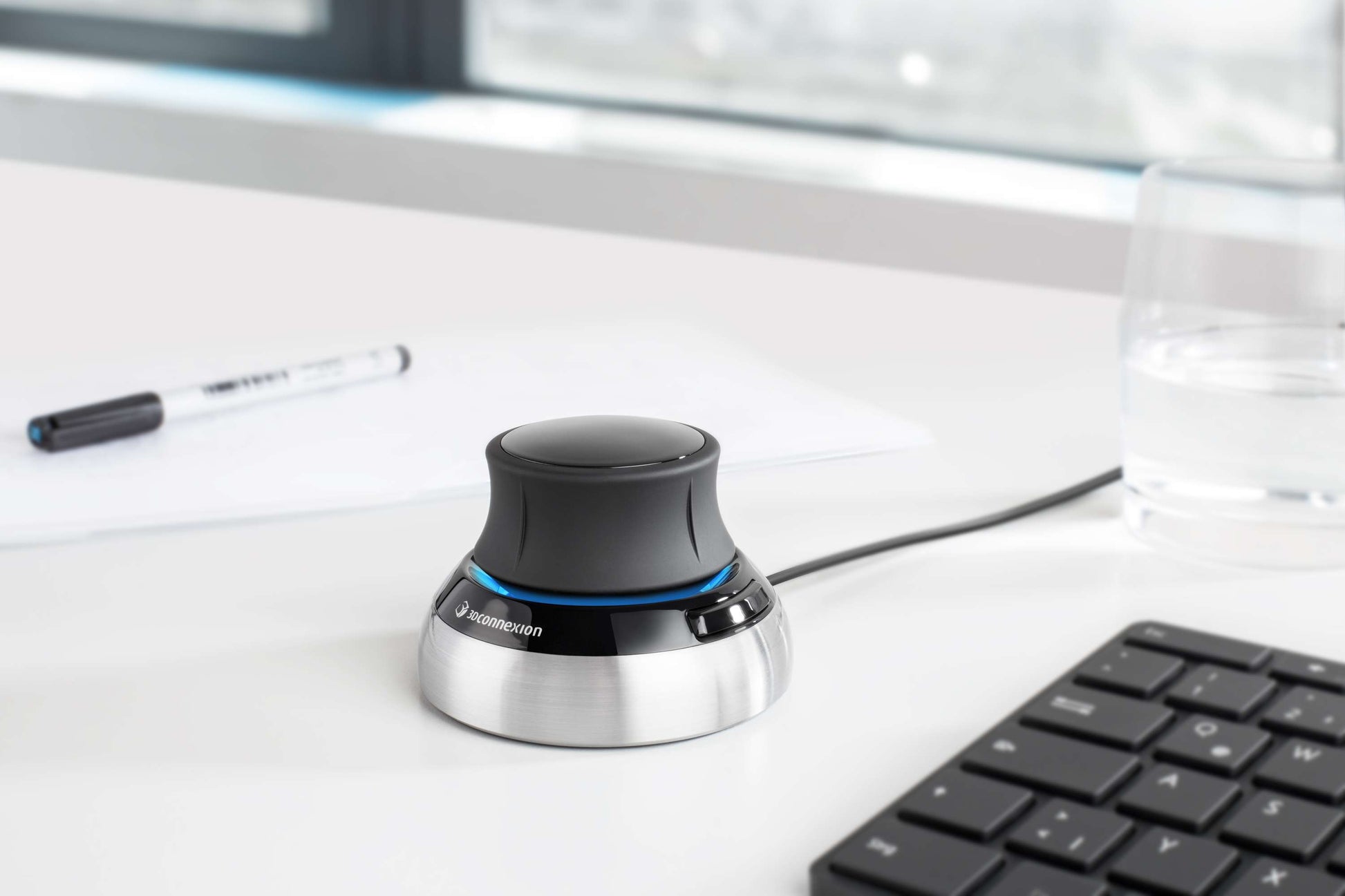 Trots sitt kompakta format erbjuder SpaceMouse Compact stabilitet i professionell klass tack vare sin borstade stålfot, som ger rätt tyngd och balans även vid intensiv användning. De två programmerbara knapparna kan anpassas via radialmenyer och kopplas till programspecifika kommandon för snabbare arbetsflöde.