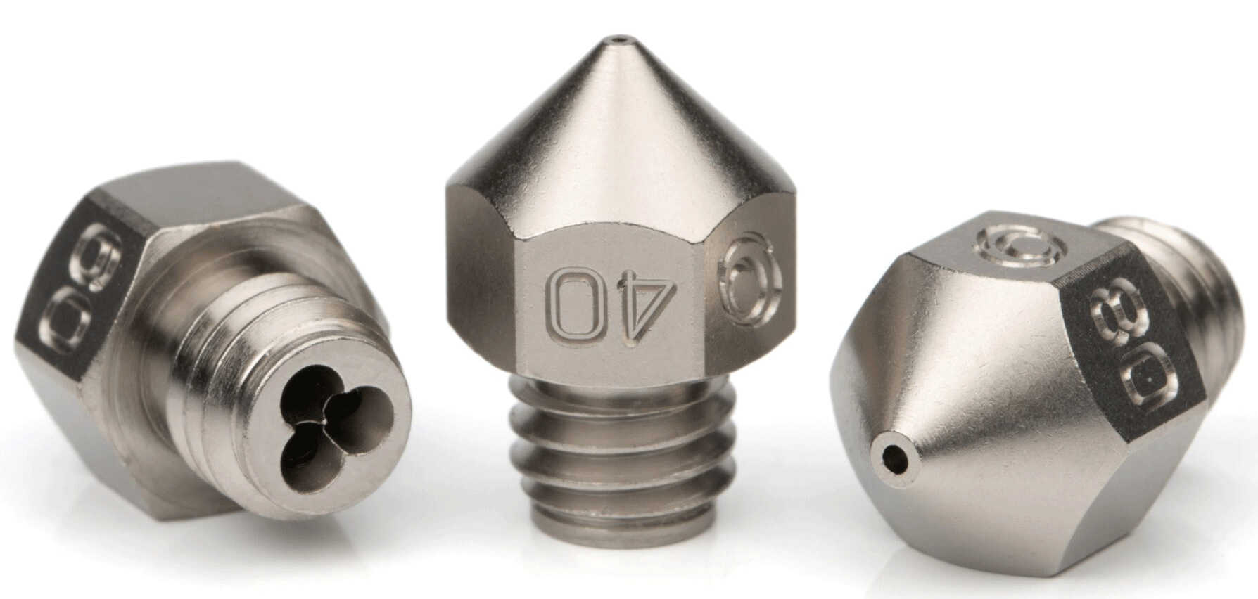 Tillverkat i mässing med slitstark nickelbeläggning för förbättrad slitstyrka, korrosionsmotstånd och smidig materialmatning – samtidigt som plastvidhäftning minimeras. Munstycket följer MK8-standard och är optimerat för 1,75 mm filament, men kan även användas med 2,85 mm varmgång.