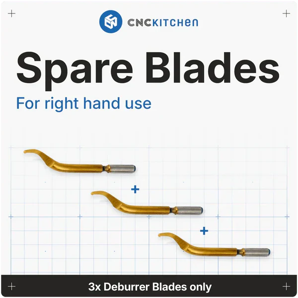 CNC Kitchen 3 st Avgradningsblad är ett högpresterande tillbehör utformat för att ge skarpa och exakta resultat vid avgradning av både 3D-utskrivna delar och metallkomponenter. De slitstarka bladen är titanbelagda för ökad livslängd och optimal prestanda även vid frekvent användning.