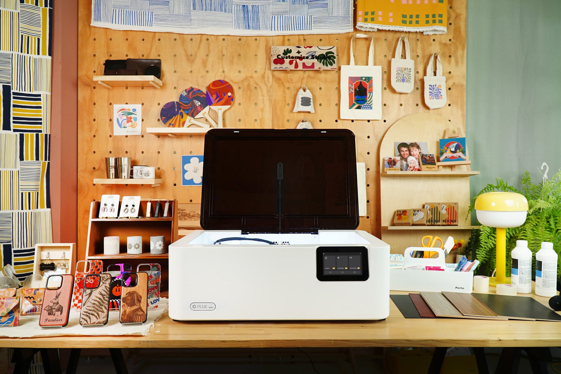 FLUX Ador är världens första 3-i-1-lasermaskin för gravyr, skärning och färgtryck, utvecklad för kreatörer, utbildning och småskalig produktion som vill samla laserbearbetning och färgprint i ett och samma system. Med utbytbara moduler kombinerar Ador diodlaser, infraröd laser och färgskrivare, vilket ger en ovanligt bred kreativ frihet i ett kompakt och användarvänligt format.
