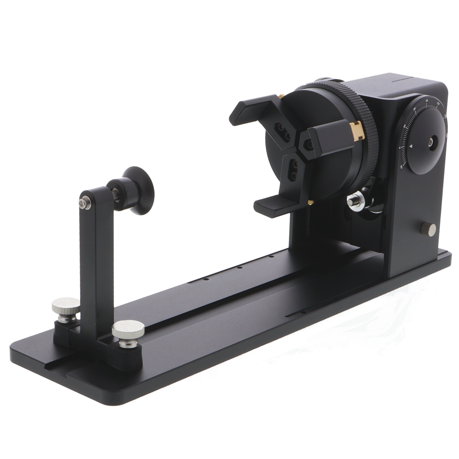FLUX Ador Chuck Rotary är ett avancerat roterande tillbehör för FLUX Ador som möjliggör exakt 360° gravering på cylindriska, sfäriska och oregelbundet formade objekt. Med ett robust chuck-system och utbytbara käftar får du maximal stabilitet även vid gravering av komplexa former.