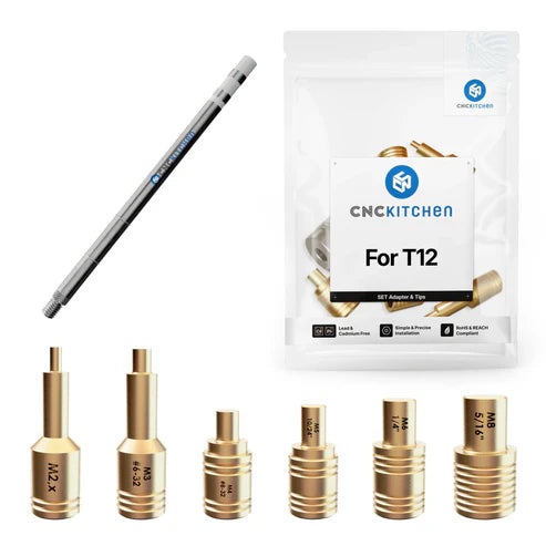 CNC Kitchen Lödspetsar SET kompatibla med T12-standard är framtaget för att leverera högsta precision, effektiv värmeledning och enkel hantering vid installation av gänginsatser i 3D-utskrivna delar. Setet passar lödkolvar som använder T12-systemet och är utformat för att ge både professionella användare och avancerade makers tillförlitliga resultat.