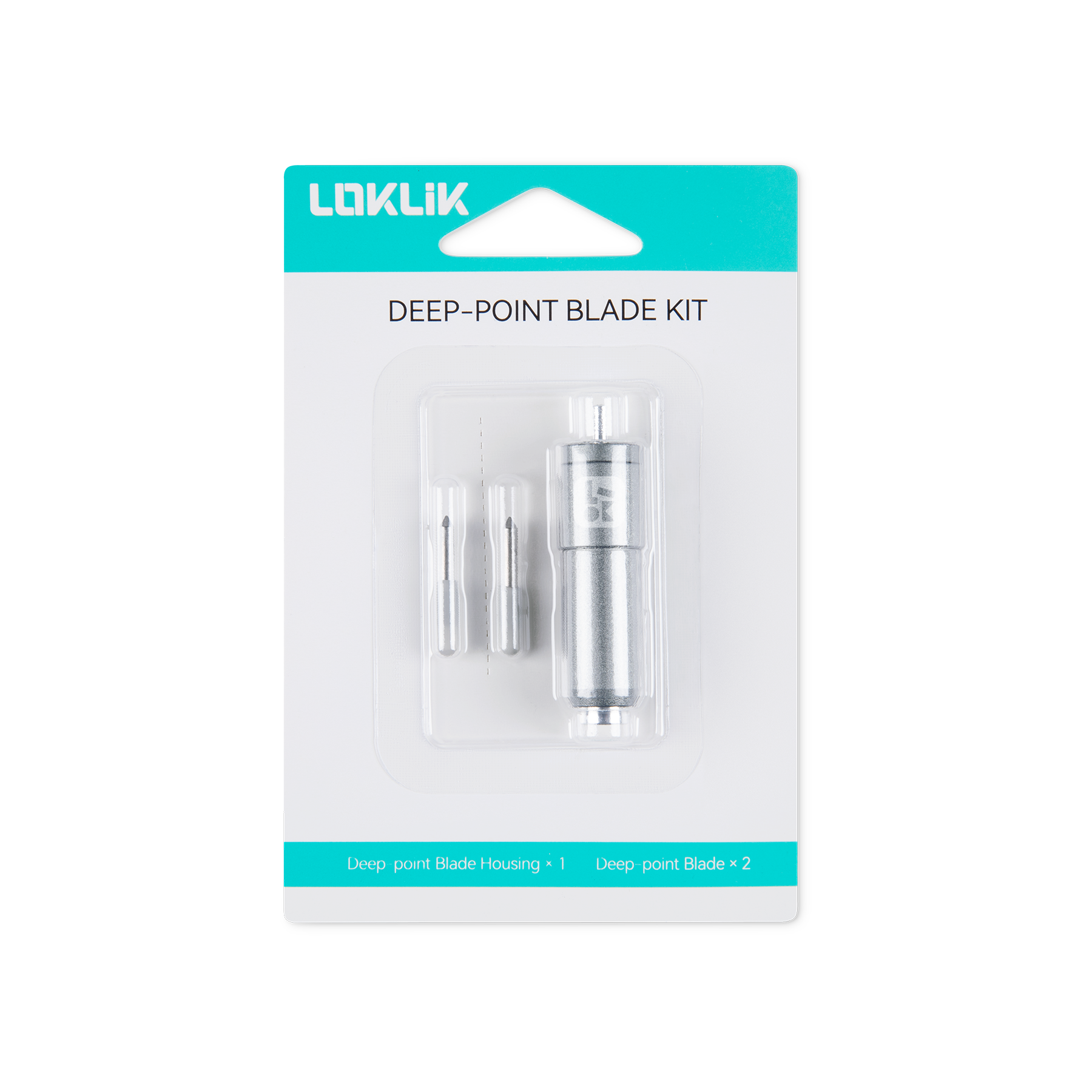 LOKLiK iCraft™ Deep-point Blade Kit är designat för att leverera precisionsskärning i kraftigare material. Med en skärvinkel på 60° klarar bladet att skära genom upp till 2,0 mm tjocklek, vilket gör det till ett pålitligt val för material som konstläder, krympplast, EVA-skum och magnetiska ark.