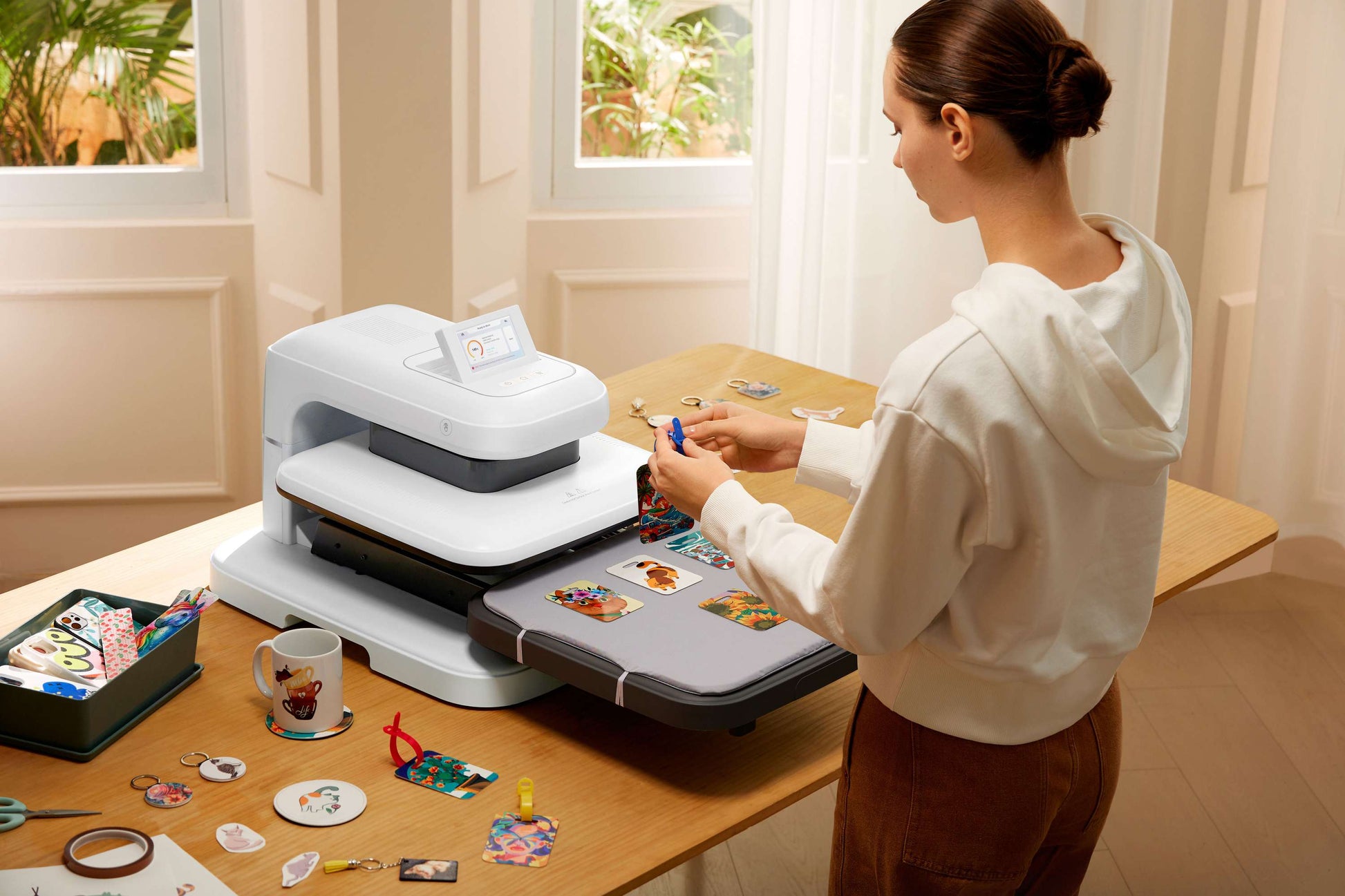 Den automatiska öppnings- och stängningsfunktionen eliminerar manuell belastning och säkerställer jämnt tryck över hela ytan, vilket ger högkvalitativa resultat vid exempelvis sublimering, DTF och andra värmeöverföringstekniker. Med förinställda materialprogram, snabb uppvärmningstid på bara 5,5 minuter till 210 °C och ett avancerat säkerhetssystem med utdragbar låda och automatisk avstängning är ImPress™ Auto 2-Smart utvecklad för effektivitet, säkerhet och användarvänlighet.