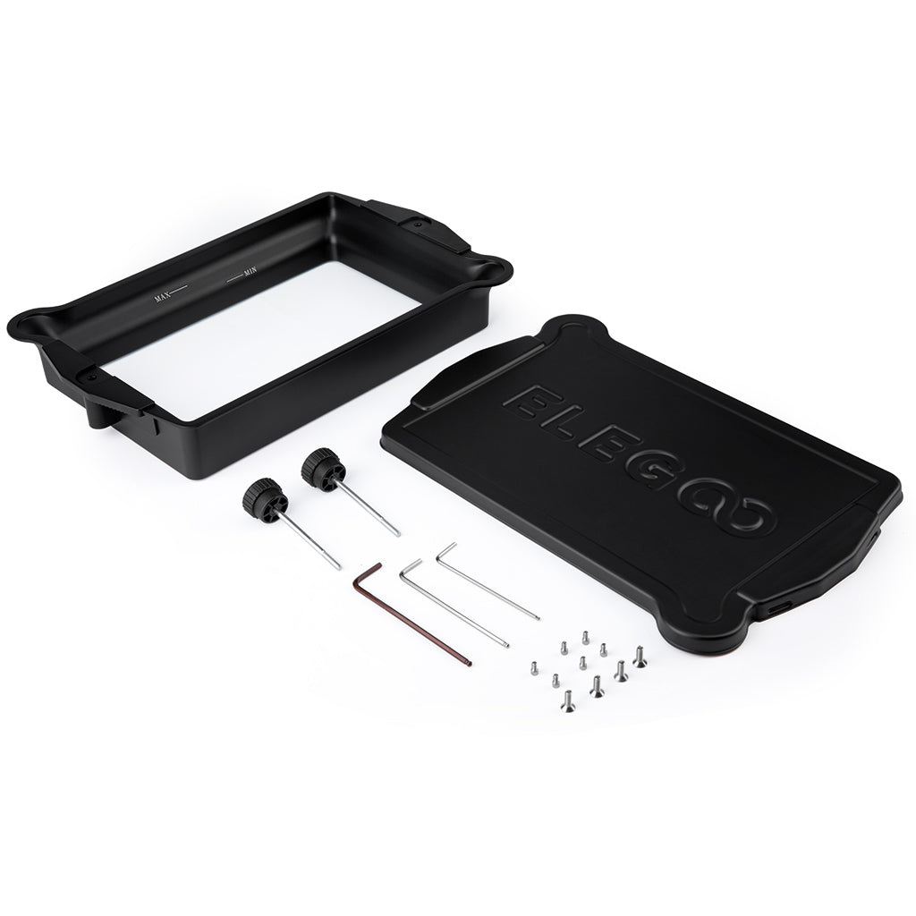 Den robusta metallramen säkerställer jämn skiktseparation och bidrar till minskad risk för misslyckade utskrifter. Ytan är kemikalieresistent och lätt att rengöra, vilket gör den idealisk både som ersättningstank och som extra tank vid frekventa resinbyten.
