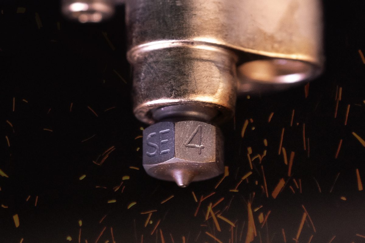 GammaMaster är tillverkad i en patenterad härdad metalllegering som ger 2,7x högre värmeledningsförmåga än härdat stål, vilket gör att du kan skriva ut slipande material utan att behöva höja temperaturen. Den klarar de mest krävande filamenten – från glasfiberförstärkt nylon till kolfyllda polyamider – samtidigt som du behåller utskriftshastigheten och kvaliteten.