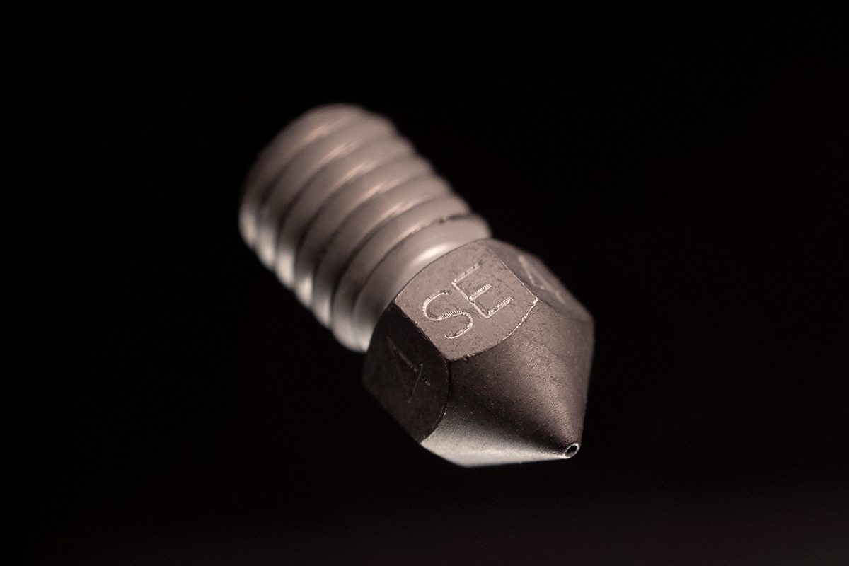 Med en Rockwell C-hårdhet på 63 och livstidsgaranti mot nötningsslitage, står GammaMaster emot slitage som annars snabbt förstör konventionella munstycken. Munstyckets geometri är RepRap-standard (M6x1,0, 7 mm gänga) och är graverad på tre sidor för enkel identifiering.