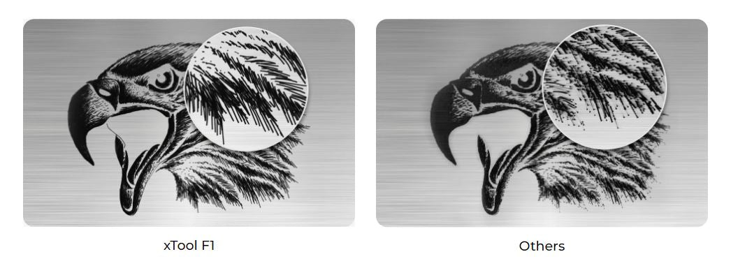 xTool F1 är en banbrytande bärbar lasergraverare utrustad med både 10W blå diodlaser och 2W 1064nm infraröd laser, vilket ger dig kraften att gravera och skära i ett brett spektrum av material med exceptionell hastighet och precision. Med imponerande 4000 mm/s gravyrhastighet, galvanometersystem av industriklass och ett slutet skyddshölje för klass 1-lasersäkerhet, är F1 ett kraftpaket i kompakt format – perfekt för allt från personliga projekt till professionella tillämpningar.