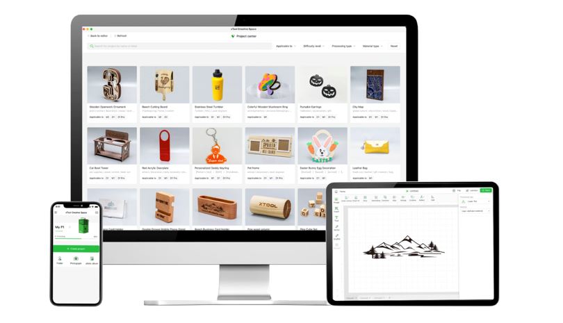 – Programvara: xTool Creative Space (XCS), LightBurn