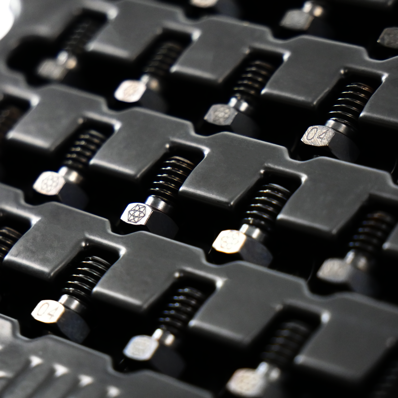 CRB-serien är känd för sin låga friktion och utmärkta slitstyrka. Den släta ytan minimerar plastansamling runt mynningen och möjliggör rena utskrifter med färre avbrott. Med en temperaturtålighet på upp till 300 °C är det ett perfekt val för material som kolfiberförstärkt PLA, glow-in-the-dark PLA, och andra kompositer.